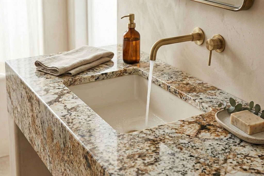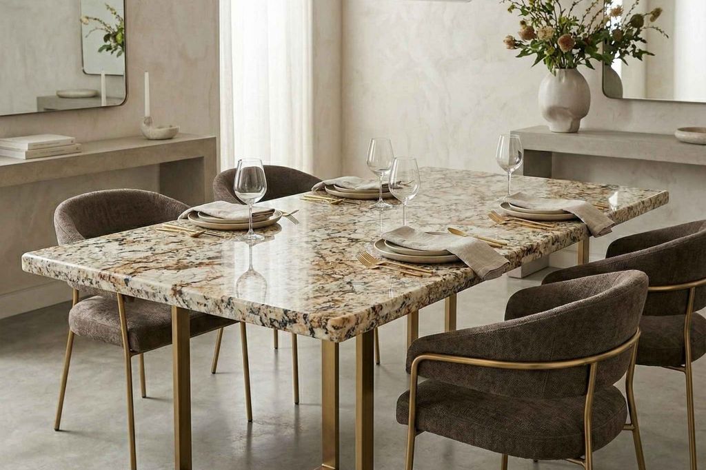 African Persa Granite from Namibia is a distinctive natural stone known for its warm beige base enriched with flowing patterns of gold, brown, and soft grey tones, creating a sense of movement and depth across every slab. Its bold yet elegant appearance makes it an ideal choice for luxurious interiors, whether used for flooring, wall cladding, or statement countertops. Highly durable and resistant to heat and daily wear, this granite combines visual richness with long-lasting performance, offering a refined and timeless finish that enhances both residential and commercial spaces.