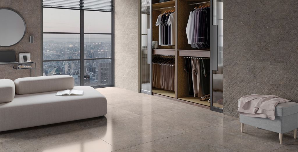 Building emotions through the aesthetic value of cement and stone. Far from creating an industrial feel, Cement Stone reinterprets cement, displaying a warm surface finish without losing its architectural essence. It can blend in with the most contemporary settings, thanks to its carefully selected color range.