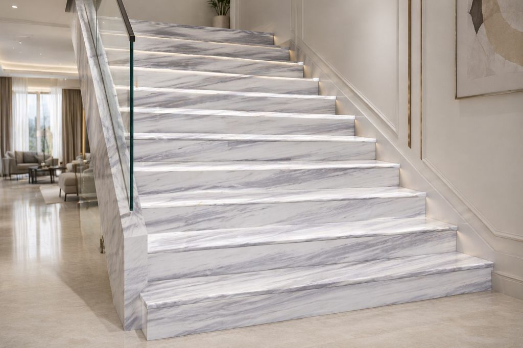 Panda Dolomite Marble is a world-renowned natural stone celebrated for its crisp white background and bold, sweeping grey-and-black linear veining. This unique dolomite is defined by its high-performance durability and striking monochrome aesthetic, offering a rhythmic, architectural look that brings a sense of modern luxury to any home. Its dense structure makes it exceptionally suitable for luxurious bathroom claddings, grand flooring, and high-traffic staircases. Beyond standard surfaces, its dramatic movement creates a stunning focal point for custom TV units and kitchen countertops. Whether used for a minimalist vanity or an expansive feature wall, Panda Dolomite Marble provides a sophisticated, clean elegance that elevates any modern interior.