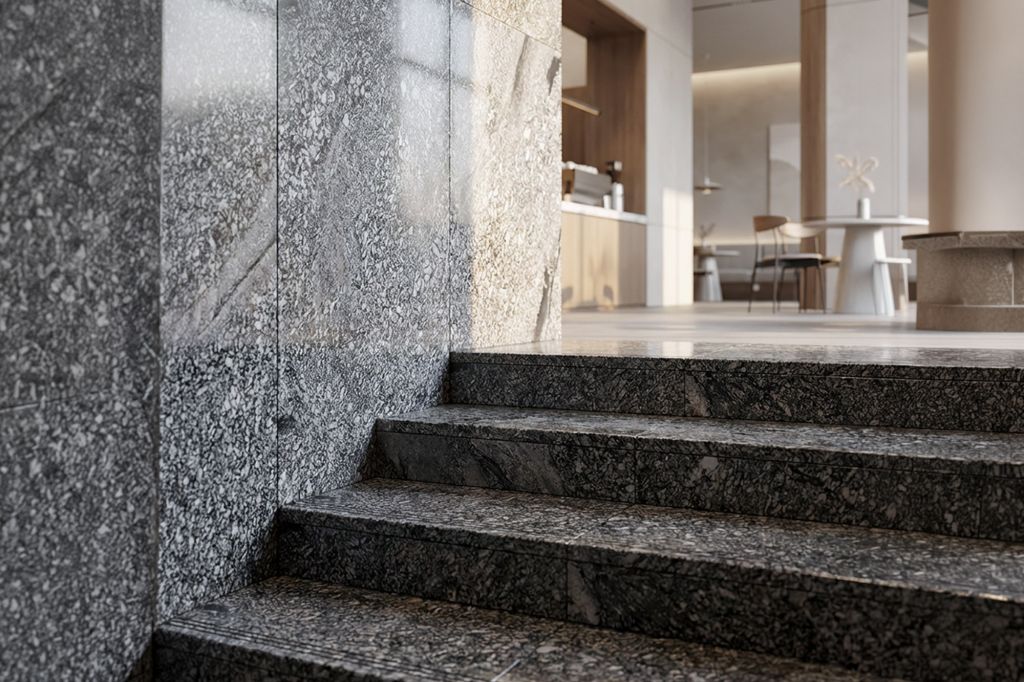 Royal Osmanthus Granite is a world-renowned natural stone celebrated for its complex, mosaic-like texture and incredible structural strength. This unique granite features a high-contrast blend of deep charcoal and peppered white minerals, creating a rhythmic, crystalline pattern that adds a sense of solid luxury to any home. Its extreme durability and natural wear resistance make it exceptionally suitable for stair steps, providing a safe and long-lasting surface for high-traffic areas. Whether used for a grand staircase or a sleek interior accent, Royal Osmanthus Granite provides a sophisticated, timeless elegance that elevates any contemporary living space.