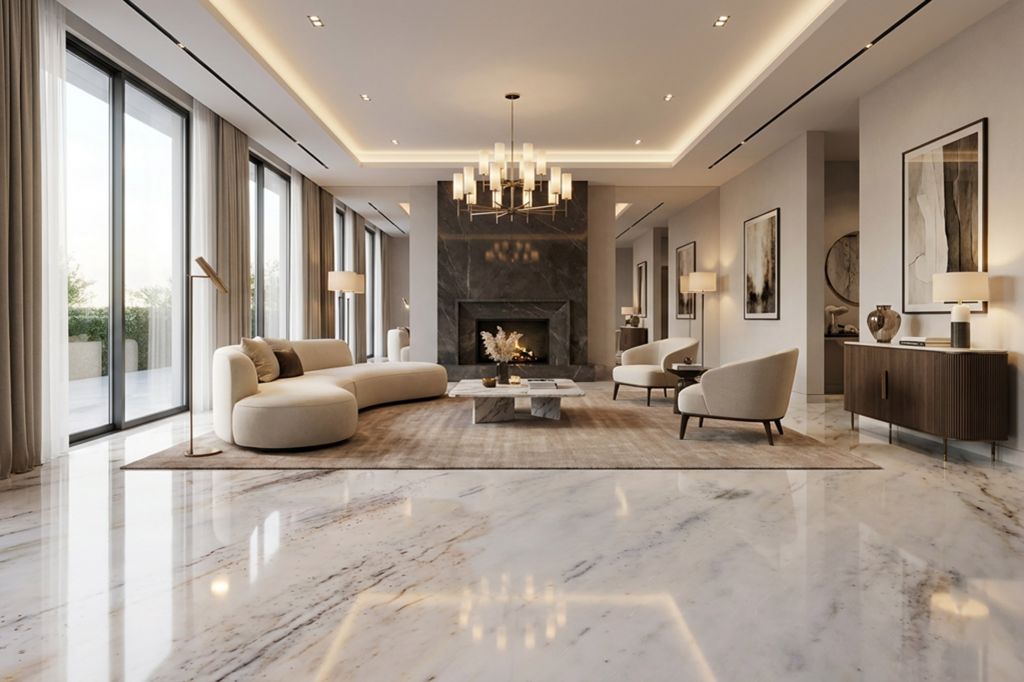Sunny White Marble is a world-renowned natural stone celebrated for its soft, luminous white base and gentle amber-to-grey clouding. This unique marble offers a warm, radiant aesthetic that brings a bright and airy feel to any home interior. Its remarkable versatility and polished finish make it exceptionally suitable for luxurious flooring and grand entrance. Beyond traditional surfaces, its elegant character is a top choice for bespoke TV units, kitchen countertops, and sophisticated bathroom vanities, cladding and flooring. Whether used for an expansive feature wall or a sleek residential accent, Sunny White Marble provides a timeless, high-end elegance that effortlessly enhances the modern living space.